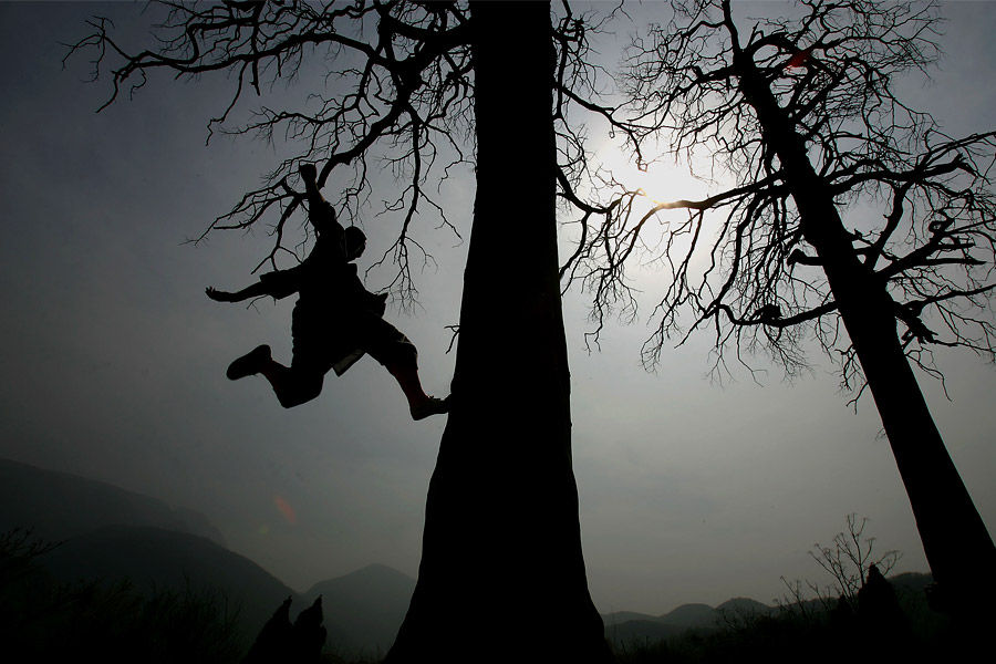 而在普通民眾中則存在一種頗為“無厘頭”的固執想法:真正的功夫高手應該是“大隱隱於市”的,這又和多年的文藝作品薰陶不無關係。路邊醉酒的乞丐是洪七公,穿著睡衣的包租婆也是高人……1980年和1981年,北京搞過散手試點,當時來自民間的參賽拳手有上百人,包含了八卦、太極、大成等等拳種。“但比賽剛開始沒兩天,一看進入半決賽的選手,都是練習散打的了。”散打創始人梅惠志說。“民間拳手的水準並不高。與散打相比,基本沒有對抗性。”他曾經會過許多民間高手,“很多都堅持不到十秒八秒。”圖為2011年2月5日,北京街頭一位男子表演“嘴刁自行車”的功夫。